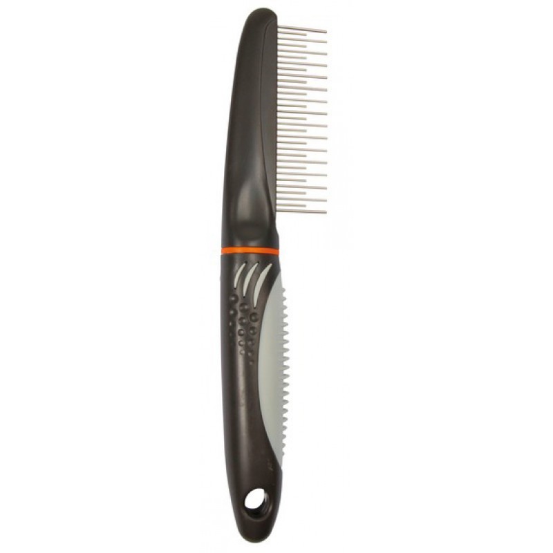 Країна виробник:Бельгія Матеріал:металеві зубці, прогумована ручка Розміри:гребінець густий (М) – 29 середніх зубців (2 см), довжина – 21 см, гребінь рідкий (L) – 20 довгих зубців (3 см), довжина – 21 см