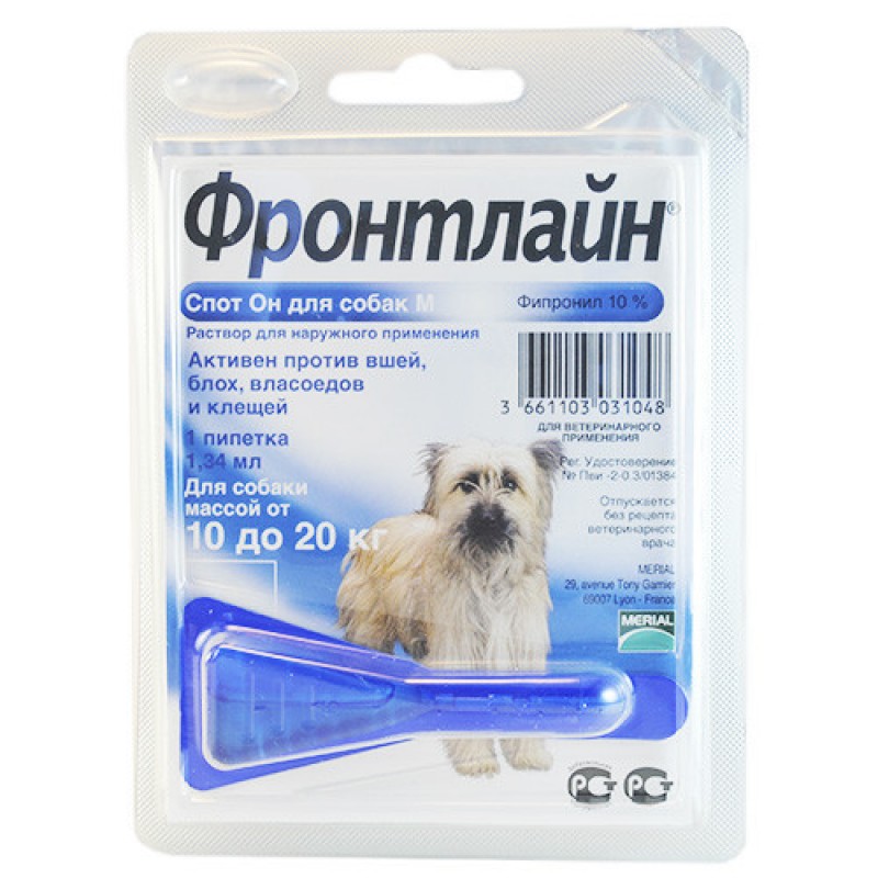 Діюча речовина:фіпроніл-9,8% та S-метопрен-8,8% Країна виробник:Франція Призначення:для боротьби з бліхами, вошами, власоїдами та кліщами (іксодовими, хейлітелами) у собак від 10 до 20 кг