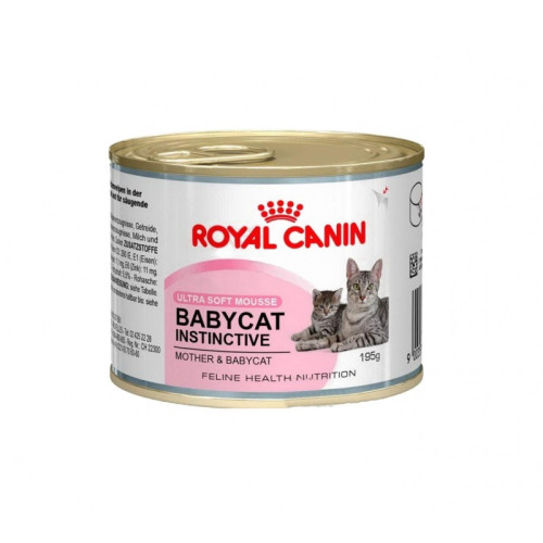 Babycat Instinctive від фірми Royal Canin - це повноцінне харчування для кошенят з 4 тижнів і до 4-х місячного віку. Корм розфасований в невеликі баночки по 195 гр. і має форму легкого мусу. Таке харчування відмінно підходить для маленьких кошенят, в період росту зубів або відбирання від матері.