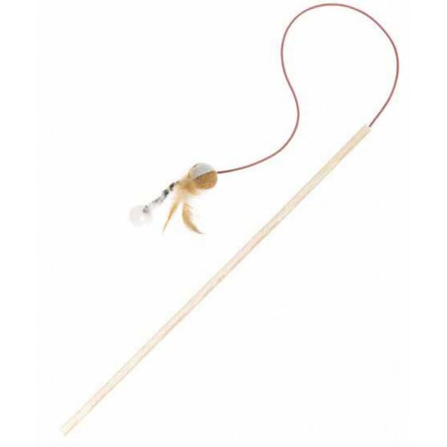 Іграшка м'ячик з дзвіночком на вудці для кішок і кошенят Comfy виготовлена з натуральних матеріалів: дерево і кукурудзяна волокно. Для більш зручної активної гри вудка має довгу мотузку, що допомагає уникнути подряпин.