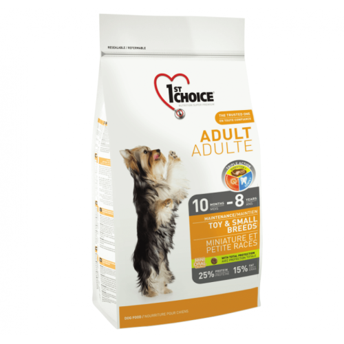 1st Choice Toy & Small Adult Chicken - корм на основі м'яса курки для собак мініатюрних і малих порід вагою до 10 кг у віці від 10 місяців до 8 років.
