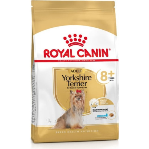 Royal Canin Yorkshire Terrier Ageing 8+ – повнораційний сухий корм для собак породи йоркширський тер'єр віком від 8 років. Має привабливий смак і аромат, покращує зовнішній вигляд улюбленця та сприяє підтримці здоров'я нирок, суглобів та травної системи у собак похилого віку.