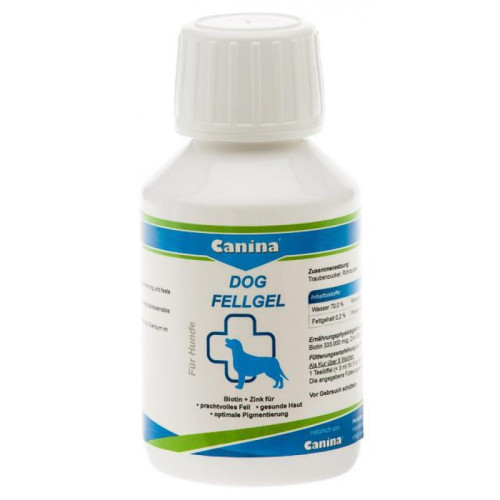 Canina Dog Fell Gel – добавка у вигляді гелю, застосовується при проблемах у собак малих порід із шерстю: ламкості, відсутності блиску, випадання, лупи. Добавка використовується також при пошкодженнях шкіри та свербіння. Також підходить вагітним і тваринам, що годують, так як містить у собі високу концентрацію біотину.