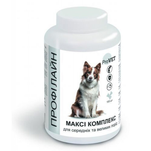 Добавка для собак ProVET Профілайн Максі комплекс з повним комплексом вітамінів і мінералів. Кальцій необхідний для процесів росту і розвитку міцних кісток і зубів, забезпечує нормальний перебіг біохімічних процесів в організмі і впливає на нормалізацію імунної системи, бере участь у передачі імпульсів в нервовій системі, забезпечує скорочення м'язів і ритмічну роботу серця, впливає на секрецію інсуліну, має протиалергічну дію .