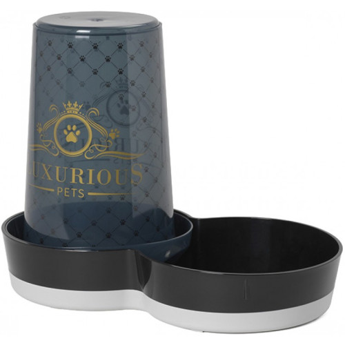 Годівниця-поїлка 2 в 1 Moderna Tasty Jumbo Luxurious Pets - незамінний аксесуар для власників домашніх тварин, які часто затримуються на роботі та не встигають годувати вихованця вчасно. Місткість, що щільно закривається, дозволить зберегти всі корисні властивості і аромат сухого корму, а воду - чистою і свіжою, завдяки чому вихованець не втратить апетит і не залишиться голодним. Дно миски оснащене протиковзкою системою - прогумованою основою для запобігання ковзанню по підлозі. Місткість для води та корму має спеціальні замки для надійного кріплення до миски.