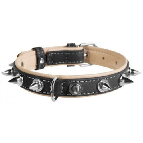 Повсякденний шкіряний двошаровий нашийник Collar WAUDOG Soft з шипами для собак. Призначений для щоденного використання на прогулянках. Мають одне півкільце для пристібання повідця. Півкільце розташоване на протилежному боці нашийника - тоді не потрібно шукати кільце, щоб пристебнути собаку (пряжка, як найважча частина, прагне на шиї собаки вниз).