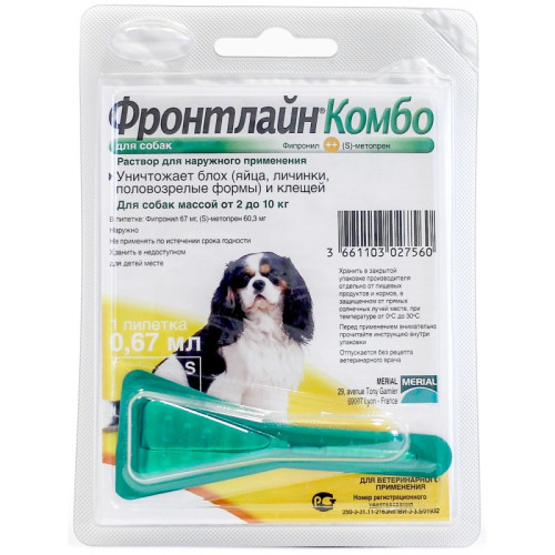 Призначення:для боротьби з бліхами, вошами, власоїдами та кліщами (іксодовими, хейлітелами) у собак від 2 до 10 кг