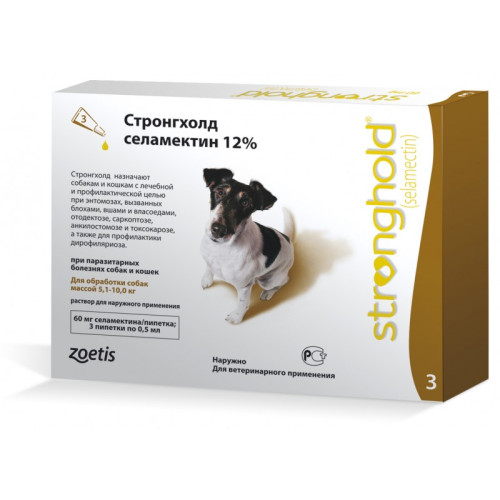 Діюча речовина: Селамектин Дозування: Краплі «Стронгхолд» призначають одноразово, дозу вибирають з урахуванням виду та ваги тварини. Країна виробник: США Всі характеристики