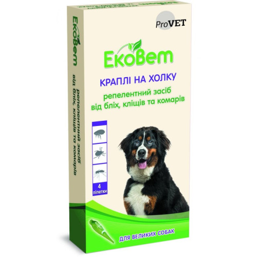 Краплі від бліх і кліщів для собак великих порід ЕкоВет, 4 піпетки х 2 мл (PR241112)