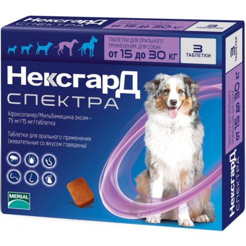 Таблетки від бліх і кліщів для собак від 15 до 30 кг NexGard Spectra, 3 таблетки