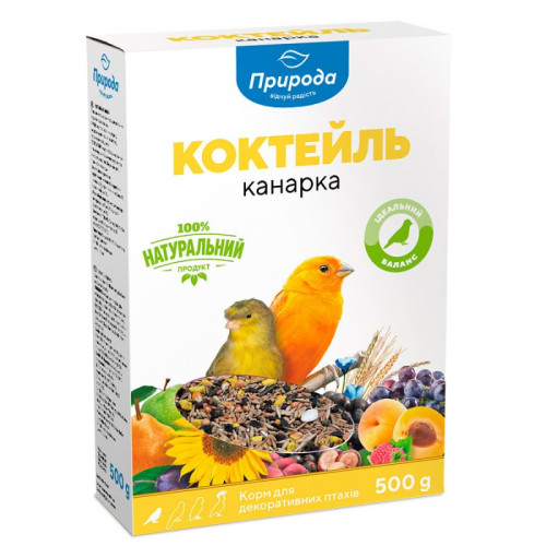 Склад: насіння канареєчника, льон, просо (червоне, жовте, чорне), вівсяні пластівці, горіхи, насіння лугових трав, ріпак, чумиза, сорго, сафлор.