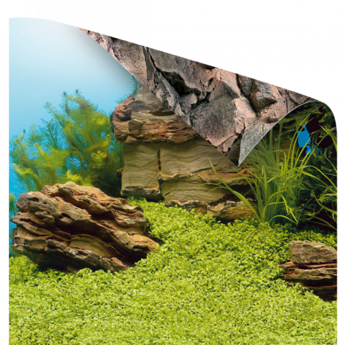 Постер під №1 імітує підводний ландшафт на передній стороні і скелю на задній стороні - відмінний варіант для різноманітного оформлення акваріума. Водостійка плівка просто наноситься зовні акваріума на задню стінку за допомогою спеціального клею.