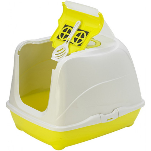 Закрытый туалет для котов Moderna Flip Cat изготовлен из качественного пластика, который не впитывает запахи, легко моется, имеет длительный срок эксплуатации. Если это первый закрытый туалет у питомца, рекомендуется на первое время снять дверку, чтобы кошка имела свободный доступ внутрь. Через несколько дней, когда кошка стала уверенно заходить в туалет-домик, установите дверку и слегка подтолкните кошку внутрь туалета.
