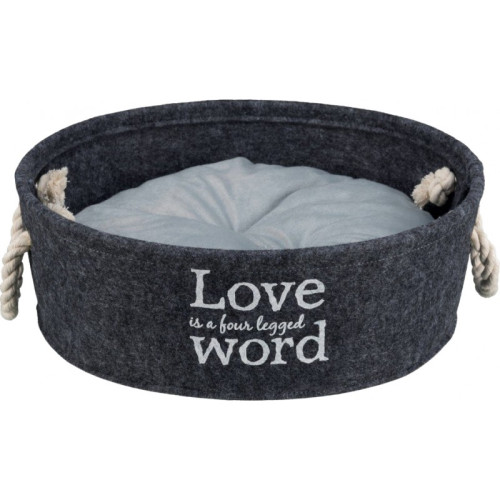 Лежак Trixie Lian имеет круглую форму с высокими бортами, что очень удобно, когда собака или кошка захочет сложиться клубочком для комфортного отдыха. Место выполнено из грязеотталкивающего войлока. Подушка стеганная, съемная, с плюшевым покрытием и наполнителем из полиэфирного флиса. Есть декоративные ручками из скрученной хлопчатобумажной веревки. Trixie Lian устойчивый благодаря усиленному краю.