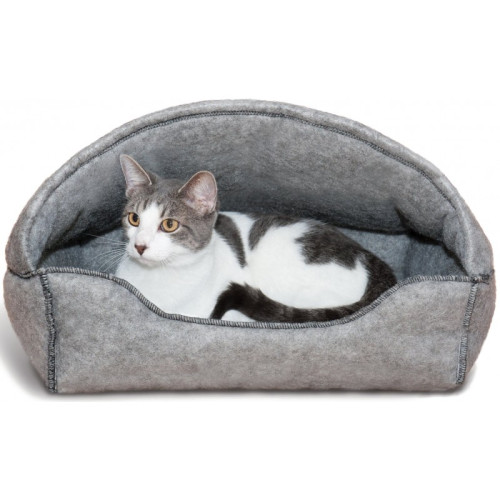 Лежак-домик KH Amazin Hooded — уютный дизайн с мягкими бортами и глубоким капюшоном, качественными материалами чехла и наполнителя, которые отлично сохраняют тепло, не сминаются при эксплуатации. Материал изделия притягивает шерсть и помогает оградить мебель и пол от ее присутствия, нейтральный серый цвет подойдет любому интерьеру, а возможность стирки обеспечит легкий ход.