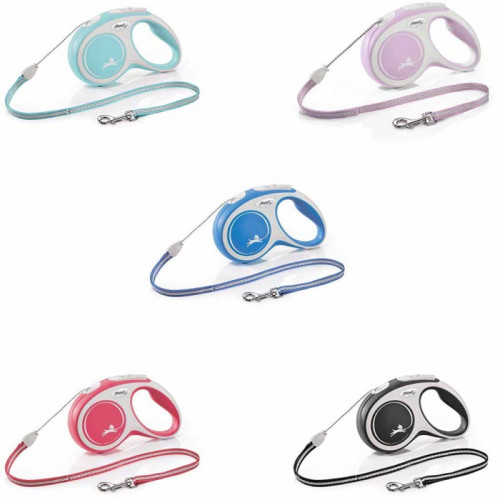 Поводок-рулетка для собак New Comfort трос – гармония комфорта и дизайна. Технические детали и дополнительные аксессуары, такие как система освещения LED, или Multi-Box для лакомства или пакетиков, повышают комфорт и легкость в использовании. Рулетка имеет прорезиненная ручку. Комфортная тормозная система. Тросовый вариант предназначен больше для активных собак. Регулировка ручки под размер руки в размерах M и L.