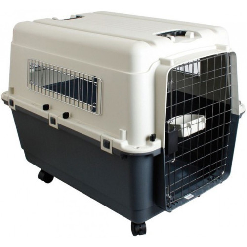 Изготовлена из достаточно ударопрочного пластика, что обеспечивает надежную защиту. Имеет открывающуюся переднюю дверцу и боковые отверстия для отличной вентиляции переноски. Переноску достаточно быстро можно собрать, без использования специальных приспособлений и инструментов. В комплект входит пластиковая емкость для воды или корма и прочные колеса для удобной транспортировки.