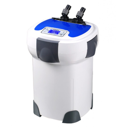 Ротор фильтра оснащен износостойкой керамической осью, благодаря которой фильтр может использоваться в пресноводных и морских аквариумах. Насос фильтра работает достаточно тихо, ось ротора надежно удерживают резиновые заглушки для снижения вибраций ротора при работе. В голове фильтра находится цифровой сенсорный LCD-дисплей для управления фильтром. Он позволяет регулировать мощность помпы, настроить время работы УФ-лампы и соответственно включать и выключать фильтр. Так же на голове фильтра имеются удобные краны для плавной регулировки потока воды. Фильтр SunSun HW-3000 имеет удобные крепления заборной и выпускной трубки, которые надежно крепятся специальными винтами к стенке аквариума.