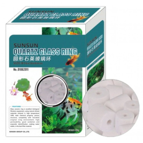 Кварцевые стеклокерамические кольца Sunsun применяют для биологической очистки воды в пресных и морских аквариумах, в качестве наполнителя в фильтр. Кварцевая стеклокерамика – является одной из разновидностей материалов на основе кварцевого стекла. Имеет прекрасную работоспособность в окислительных средах при высоких температурах.