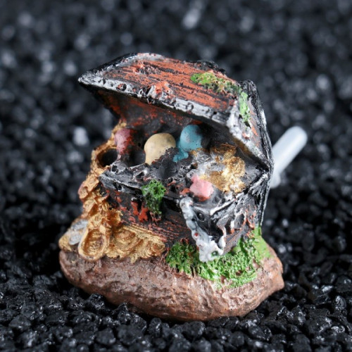 Декорация Сундук с распылителем. Помимо эстетических функций, сундук выполняет дополнительную аэрацию воды в аквариуме - внутри декорации находится распылитель. Сундук сделан из безопасных материалов, поэтому не нанесет никакого вреда жителям аквариума.